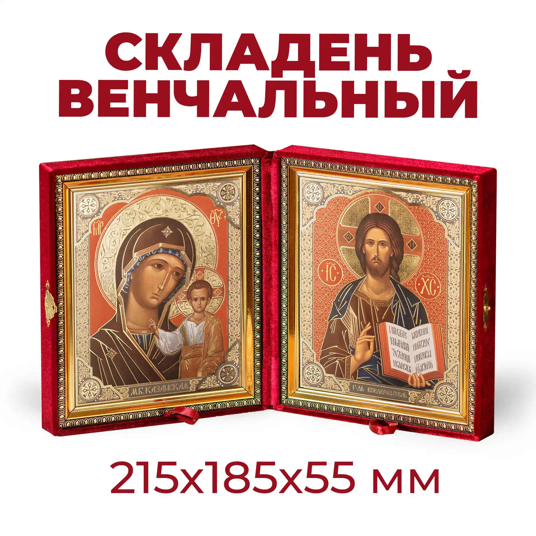 Складень 18х21 см Господь Вседержитель и Казанская БМ, бордовый