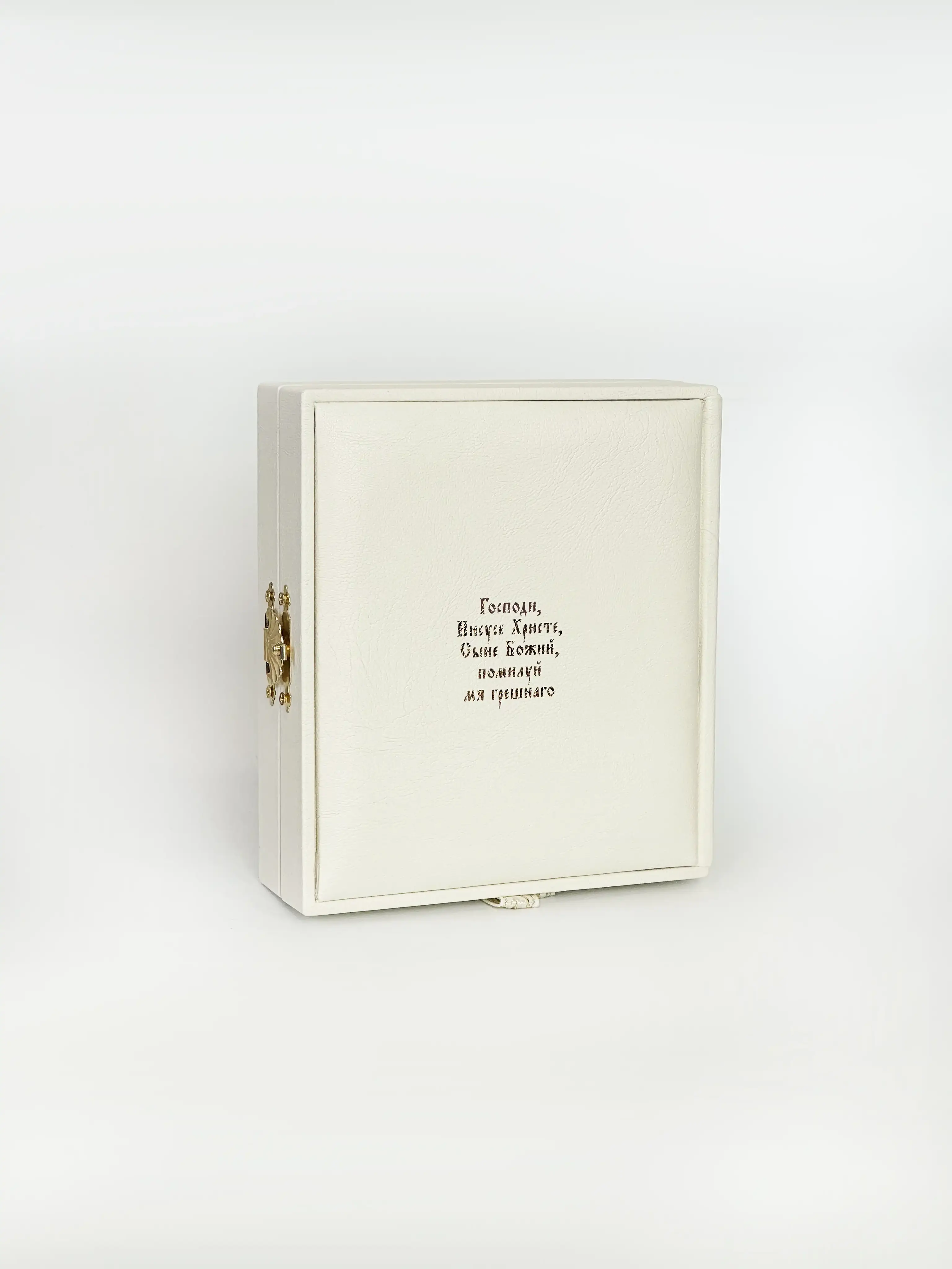 Складень кож.зам., бежевый с тиснением, 155х135х46 мм (Р10х12)